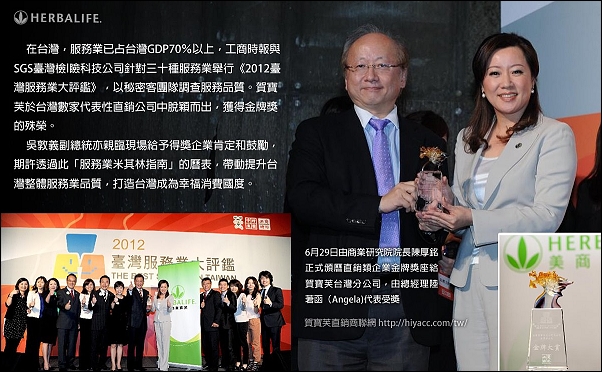 現在的保險和直銷公司不再是N百年前的老鼠會刻版印象,台灣幾個有名的直銷公司,各有消費者愛用的明星商品,產品也有直銷人員專人服務和解說,畢竟要客戶滿意,才有後續效應。而賀寶芙 Herbalife主要提供客戶營養諮詢服務,建立大眾正確且健康的營養觀念及生活型態,產品多次榮獲SNQ國家品質標章營養保健食品類認證,2012年更榮獲臺灣服務業大評鑑直銷類金牌獎。